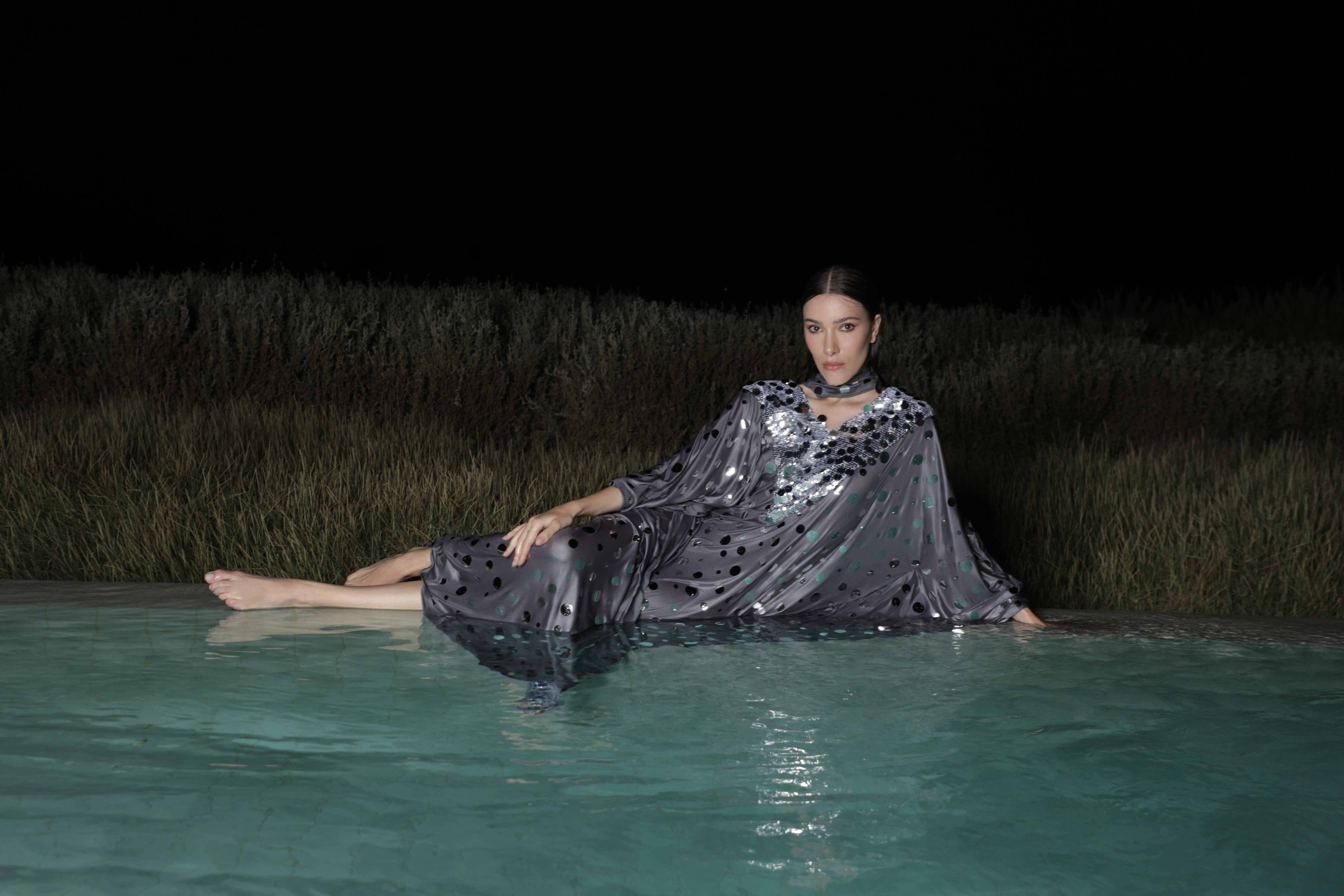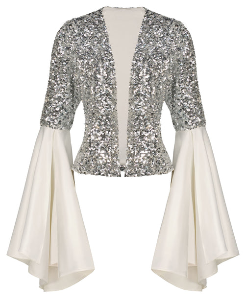 Bella Silver Sequin Jacket with Flared Ivory Sleeves