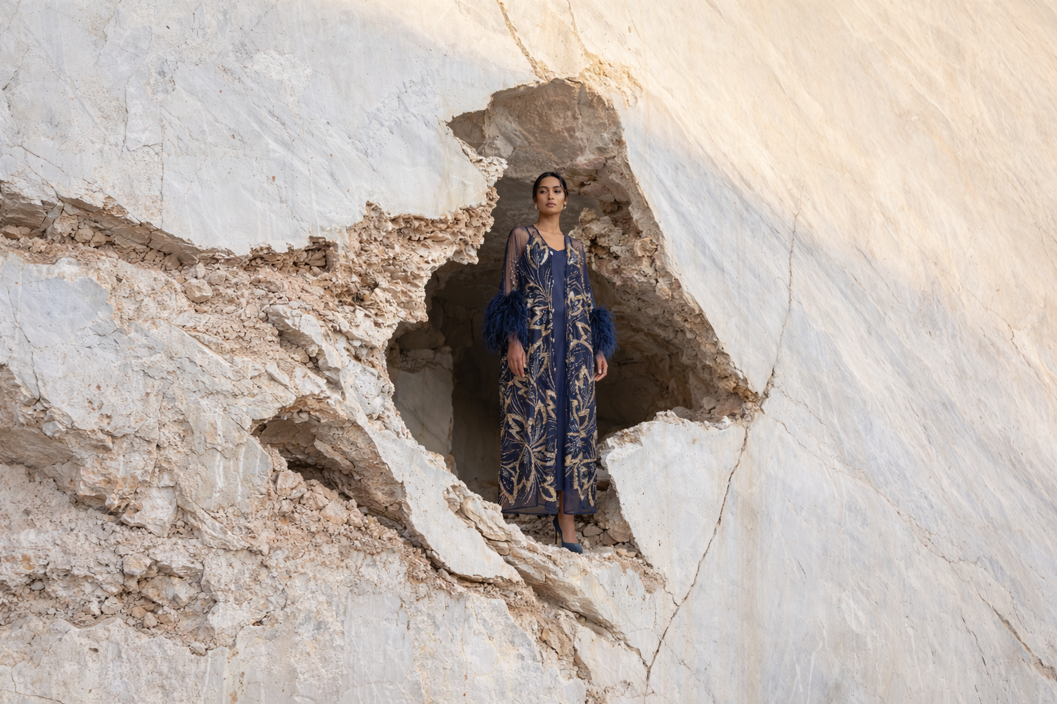 Alieezay Blazer - Navy Blue Mixed Gold and Silver